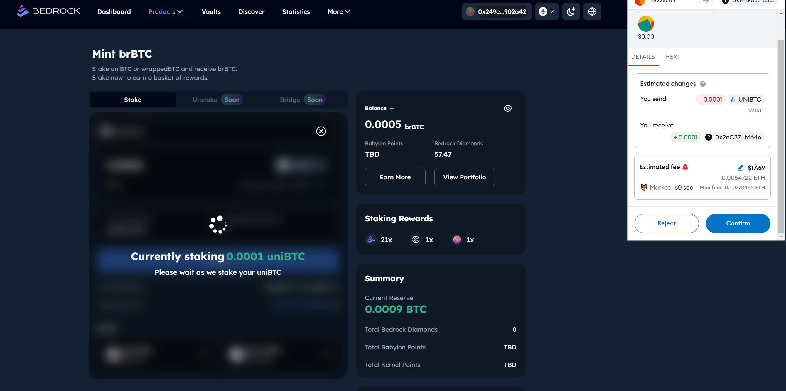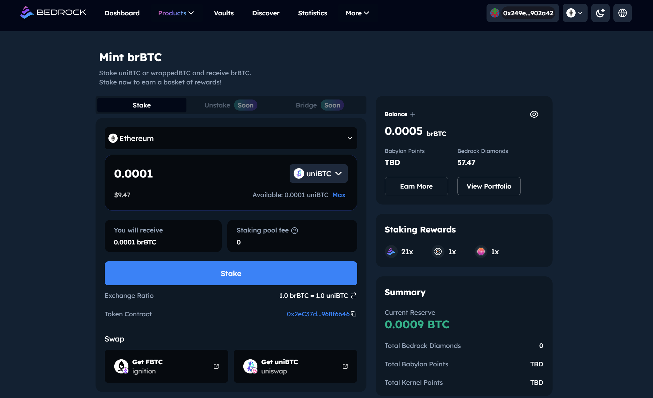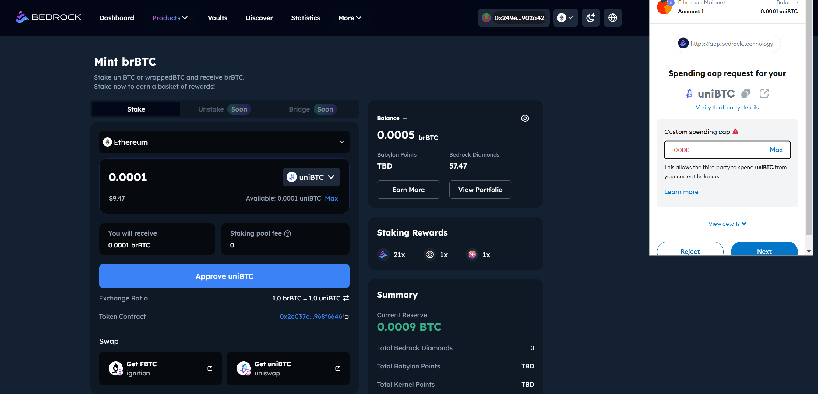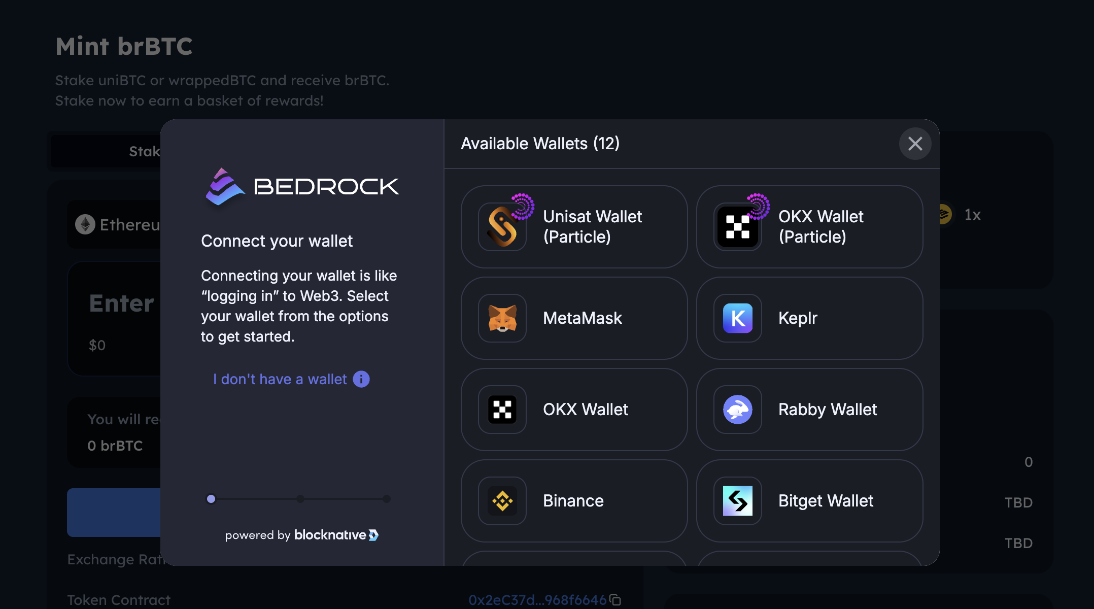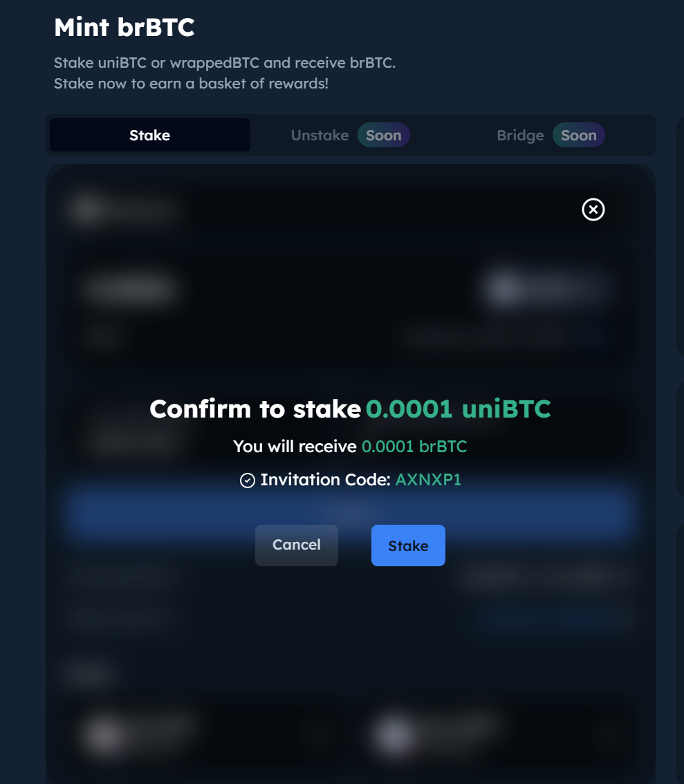 Bedrock now accepts uniBTC and multiple wrapped BTC in different networks, to illustrate, uniBTC is used in this tutorial. It always encourage users to go to brBTC page to check the latest accepted wrapped BTC on different networks.