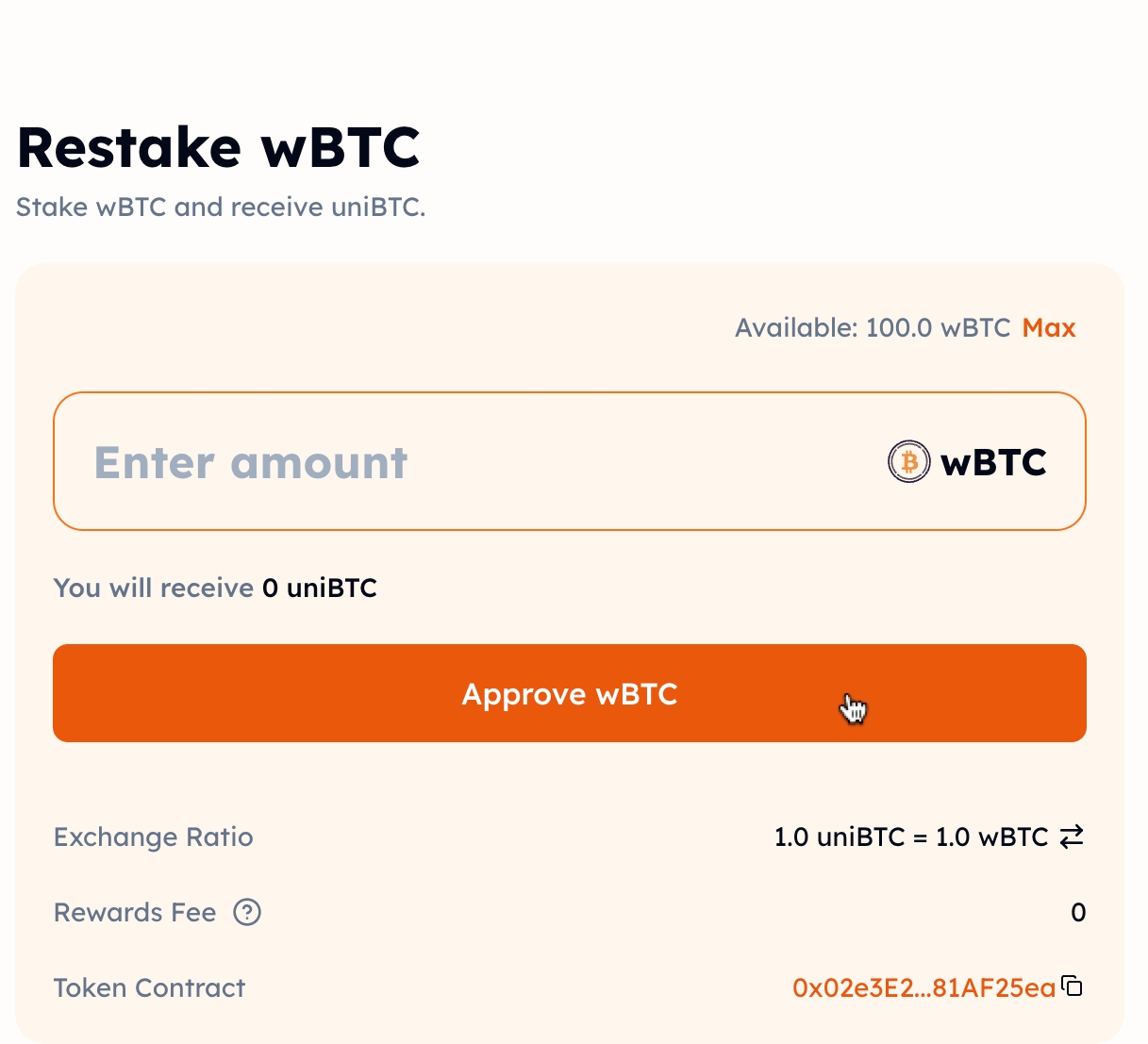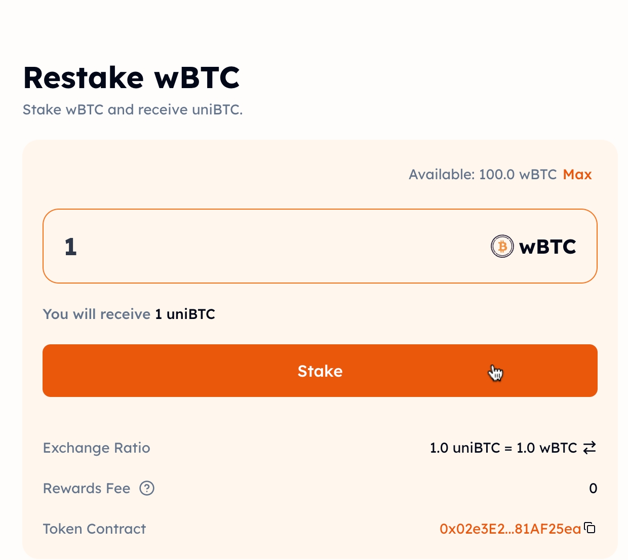 Stake your wBTC to mint uniBTC