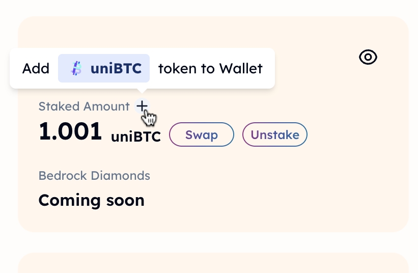 To be able to view your uniBTC on your Metamask wallet, click 'Add to MetaMask' to import the uniBTC token to MetaMask.